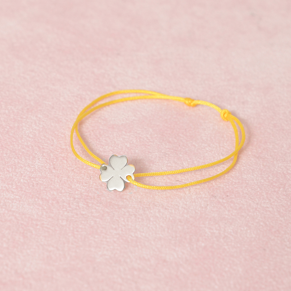 Das Armband Kleeblatt ist ein hochwertiges Accessoire, das aus einem 925Silber Anhänger und einem strapazierfähigen Polyester Faden besteht. Sie können die Farbe des Fadens selbst wählen. Verleihen Sie Ihrem Look einen Hauch von Exklusivität und Individualität mit diesem eleganten Armband.