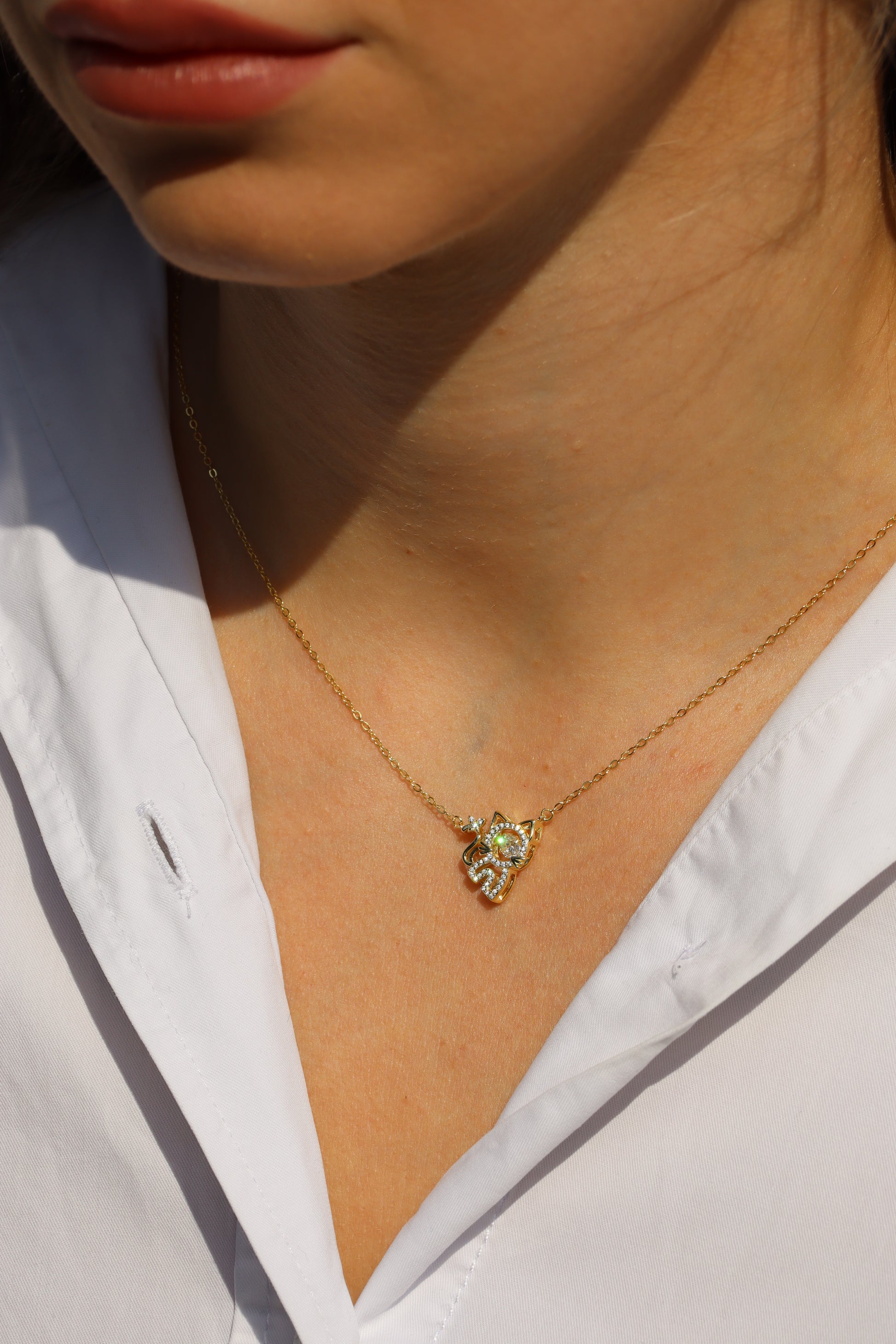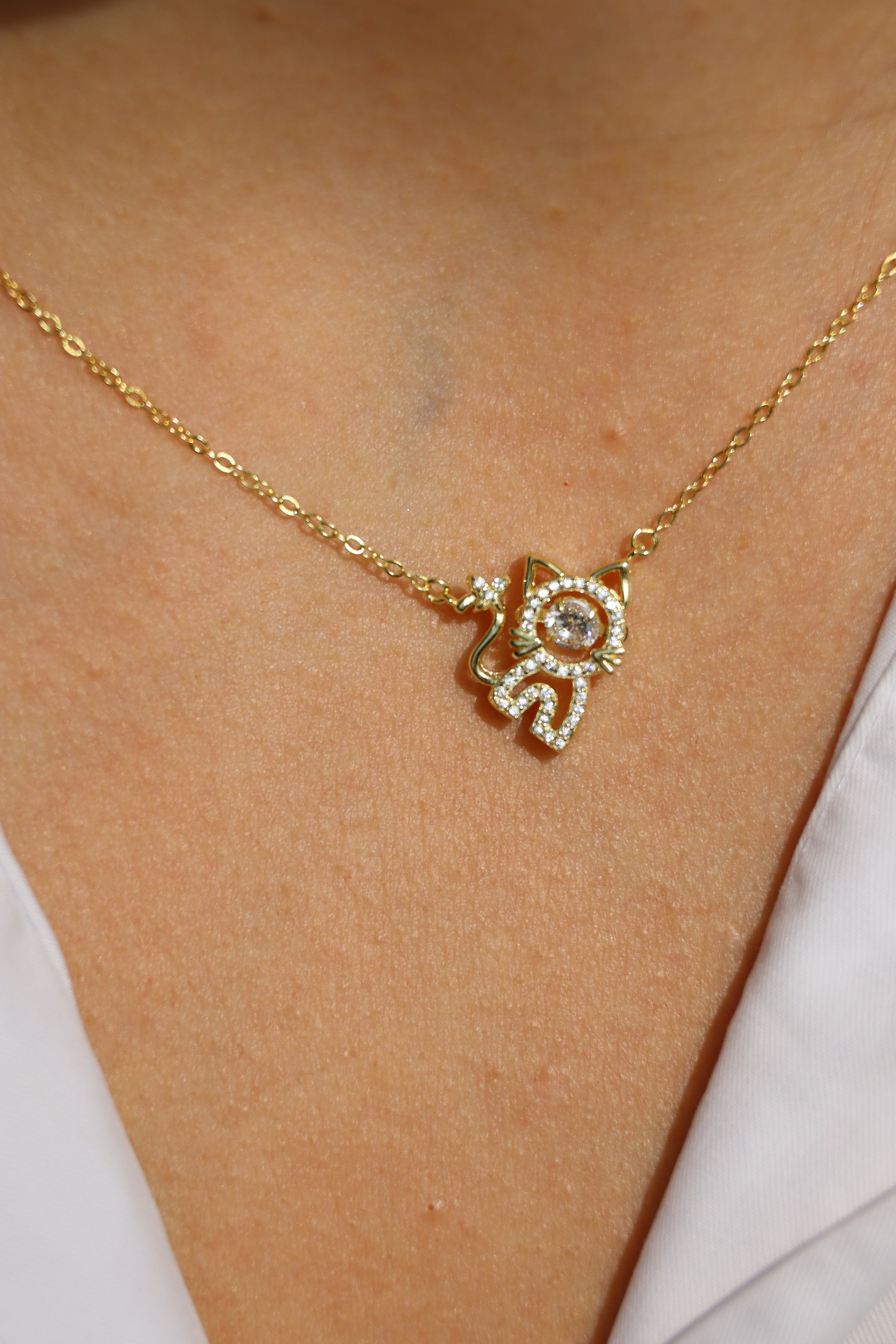 Diese verspielte Halskette aus vergoldetem 925er Silber zeigt eine charmante Katzen-Silhouette, die jedem Outfit einen frechen und eleganten Akzent verleiht. Perfekt für Katzenliebhaber, die ihren verspielten Stil mit einem Hauch von Gold zum Ausdruck bringen möchten. Ein bezauberndes Schmuckstück, das Freude und Charme kombiniert.