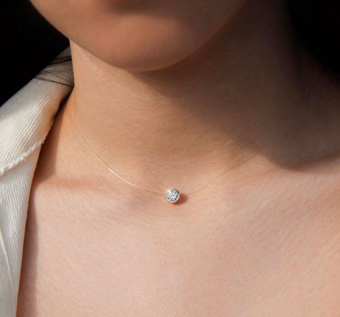 Halskette - Transparenter Faden mit Zirkon