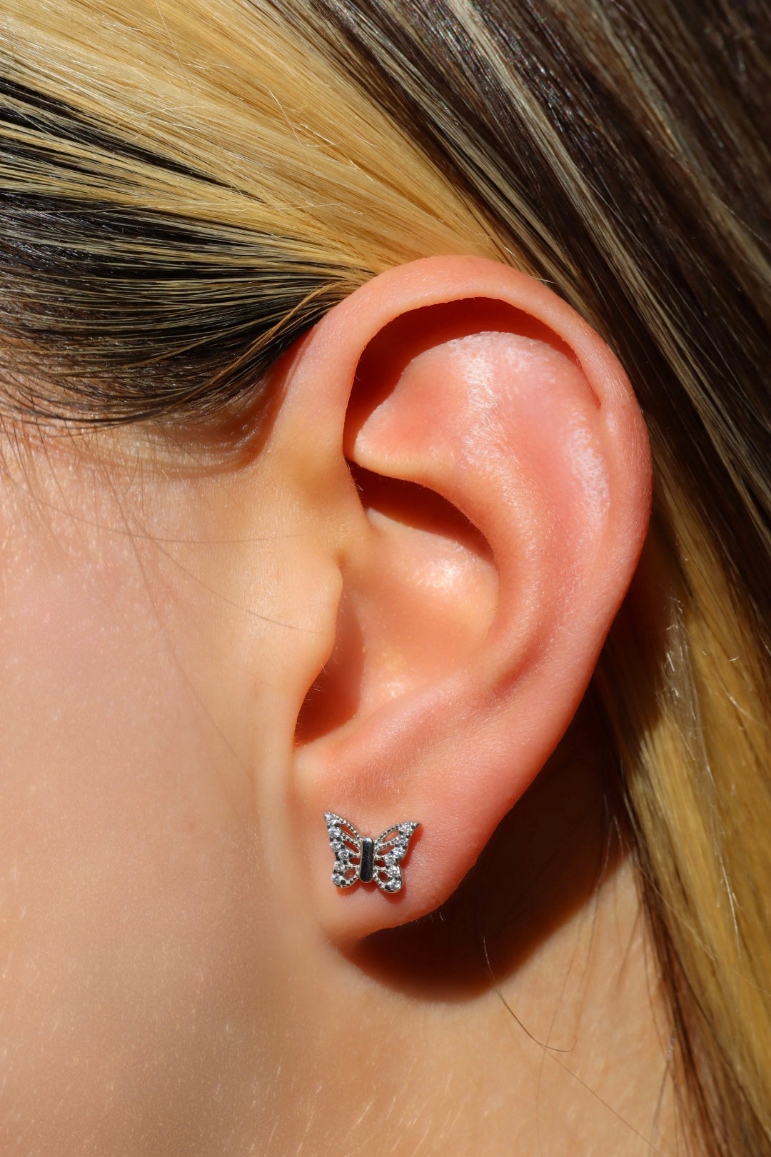 Lassen Sie sich von der Schönheit der Natur verzaubern mit diesen wunderschönen Ohrringen in Form eines Schmetterlings. Gefertigt aus hochwertigem Silber 925er, werden Sie mit diesen Ohrringen elegant und stilvoll aussehen. Perfekt für jeden Anlass, bringen sie einen Hauch von Freiheit und Leichtigkeit in Ihr Outfit!